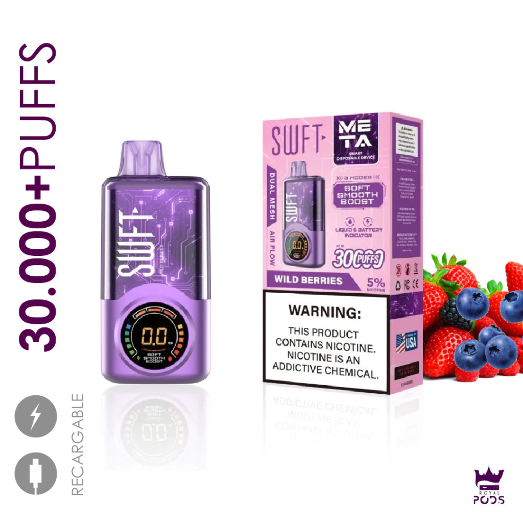 El SWFT Meta 30,000 Puff Desechable establece un nuevo estándar en vapeo desechable premium. Con una potente formulación de sal de nicotina al 5 %, este dispositivo ofrece una experiencia satisfactoria sin necesidad de mantenimiento ni recarga.